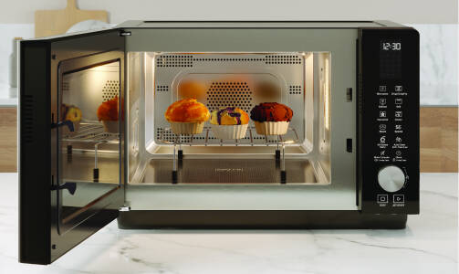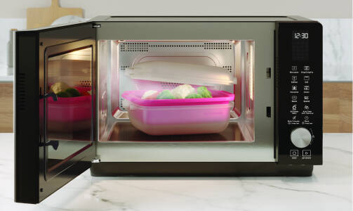 Com a nova cavidade totalmente plana tem +30% de espaço útil para cozinhar* e mais flexibilidade para cumprir todas as suas necessidades. Aprecie espaço extra para a sua comida e utensílios graças à ausência do prato rotativo.