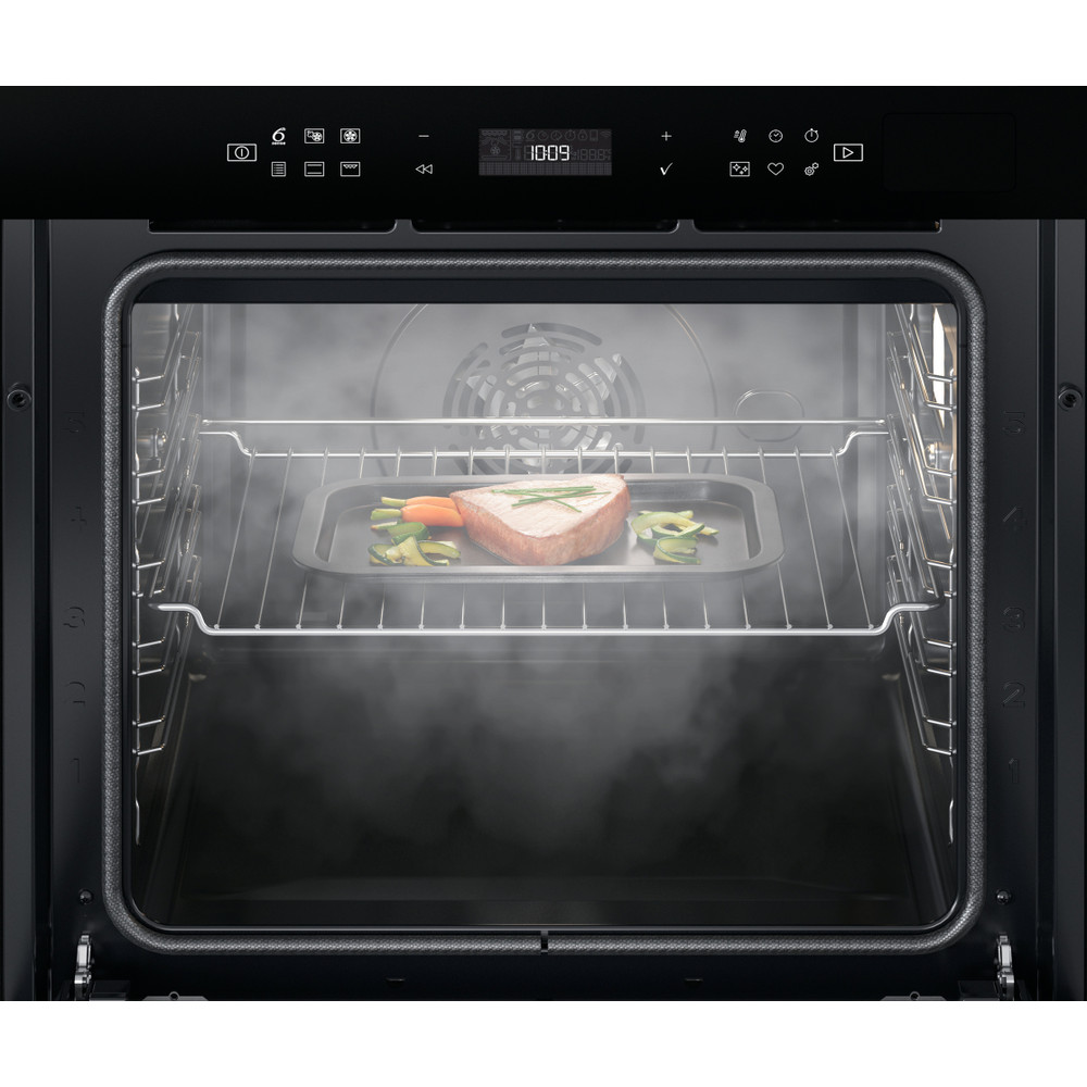 Este forno encastrável da Whirlpool inclui: tecnologia SmartClean, um ciclo de limpeza automática que garante resultados de limpeza ideais, com um simples toque. Tecnologia elétrica avançada que lhe permite cozinhar e poupar energia. Lâmpada de halogéneo para um desempenho energético mais eficiente. Tecnologia 6º SENTIDO exclusiva, que lhe permite escolher entre diversas receitas pré-programadas. O forno ajusta automaticamente as definições de cozedura, temperatura e tempo, para assegurar resultados perfeitos. Porta com soft closing (fecho suave), para maior facilidade de utilização.