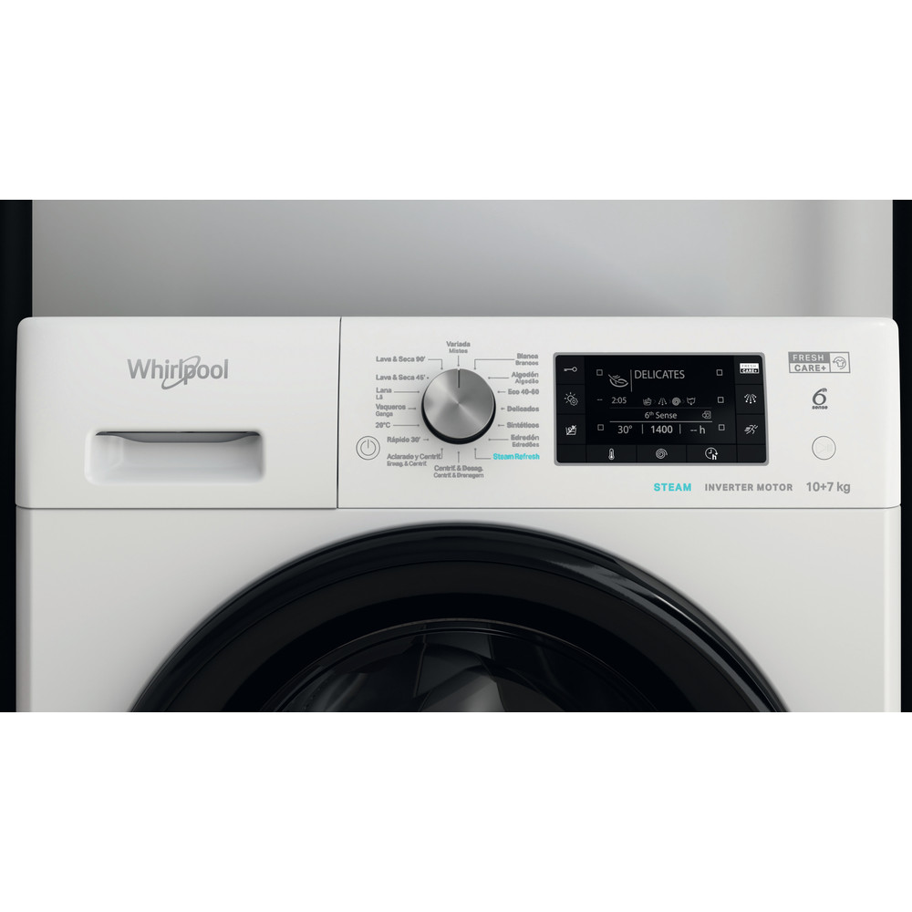 Esta máquina de lavar e secar roupa de livre instalação da Whirlpool inclui: cor branca. Grande capacidade de lavagem, de 10,0kg. Capacidade de secagem de 7,0kg. Tecnologia exclusiva 6º SENTIDO, que monitoriza constantemente a humidade no interior do tambor, protegendo a sua roupa e proporcionando excelentes resultados de lavagem e secagem. Velocidade de centrifugação de 1400 rotações por minuto, para rapidez e uso eficaz dos recursos.