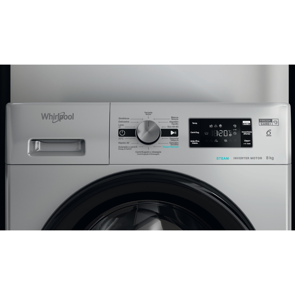 Esta máquina de lavar da Whirlpool inclui: cor prateada. Capacidade de 8,0 kg. Classificação energética A. Velocidade de centrifugação de 1400 rotações por minuto, para rapidez e uso eficaz dos recursos. Tecnologia 6º SENTIDO, que adapta os parâmetros a cada tipo de carga, assegurando os cuidados ideais para a sua roupa.